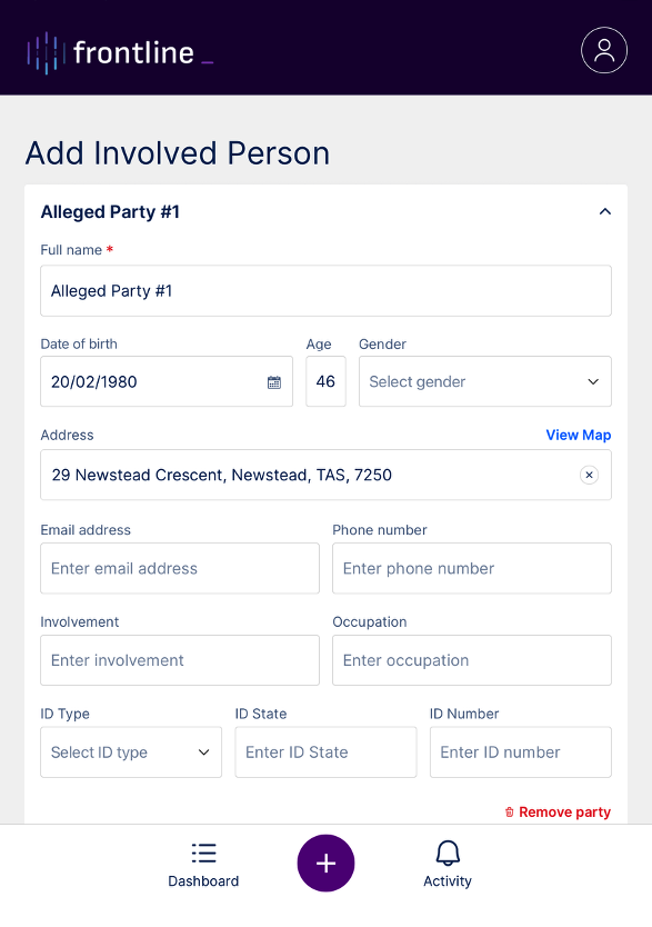 The Involved Persons tool is used to record individuals connected to a field note.These involved persons can be linked to Property receipts, Interview recordings, and witness statements.
