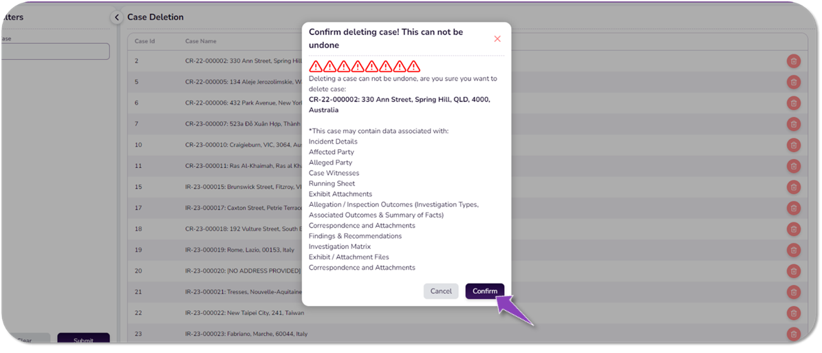 The new Case Deletion function can be used by System Admins to permanently delete a duplicate case or a case created in error. Deleting a case will permanently erase all data contained within the case. For auditing purposes, Comtrac captures a running Activity Log of all activity associated with cases in the system, including deleted cases, up to and including the deletion of the case.