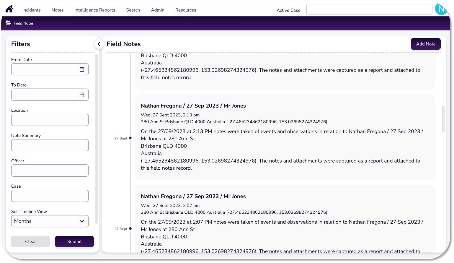 Navigate to: Notes > Field Notes