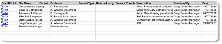 An all-new Evidence Index spreadsheet, tailored to the Commonwealth Department of Public Prosecutions (CDPP) e-brief guidelines, is available to export.