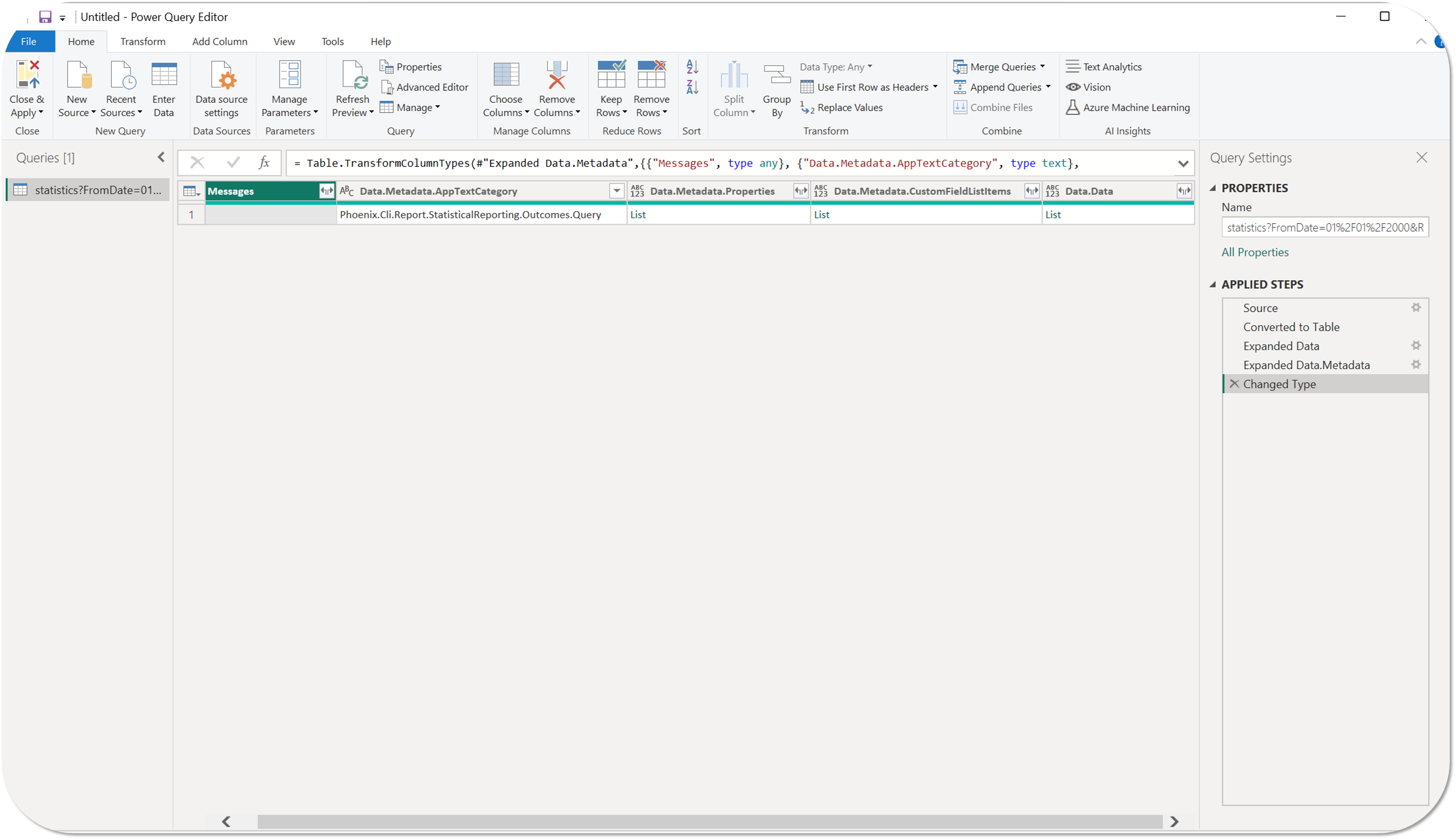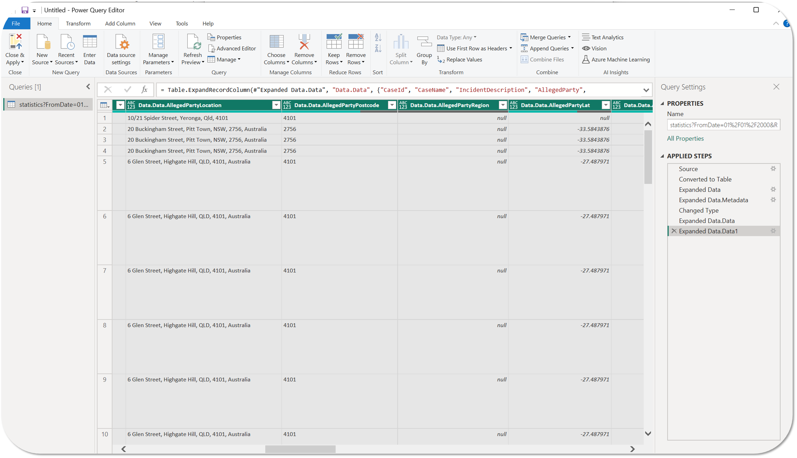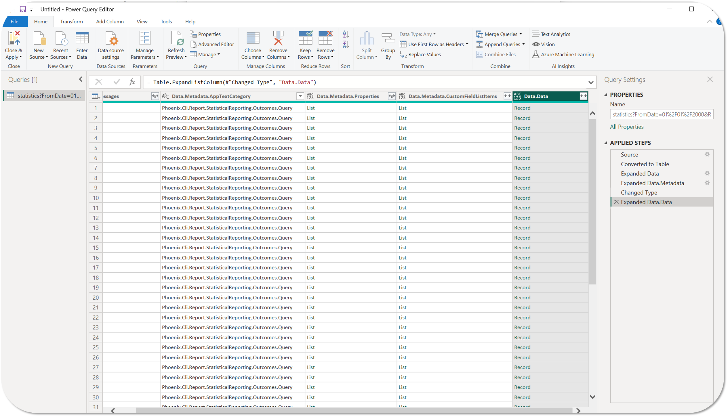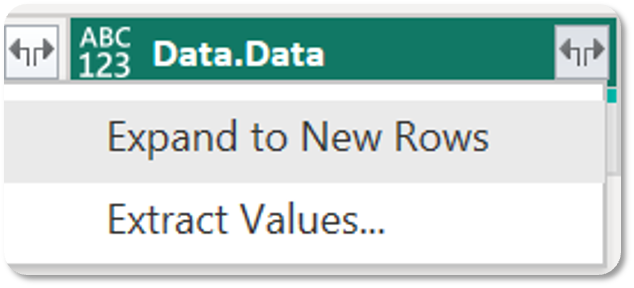 ) icon in the Data.Data column heading of the imported table and then select Expand to New Rows to expand out the list of records in the table.