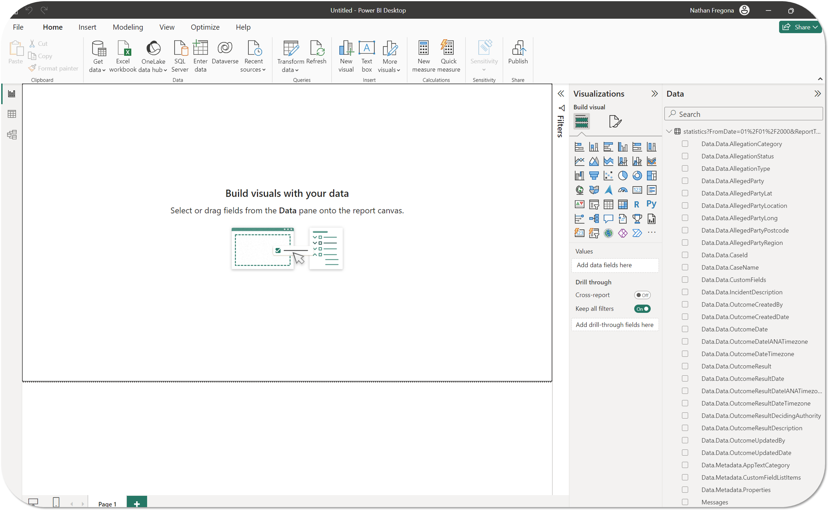 - From here you can start to build out and design your Power BI reports and templates using the connected Comtrac data.
