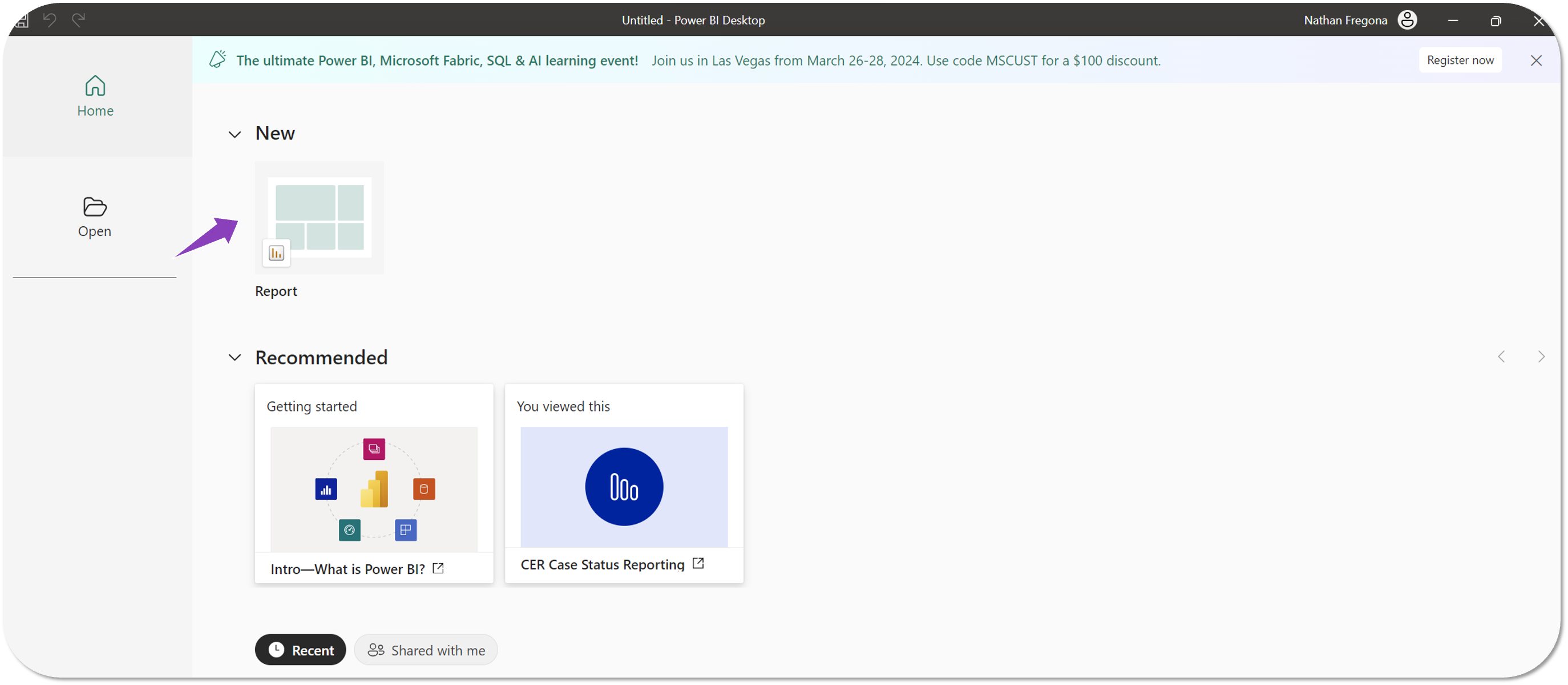 - Select New > Report.