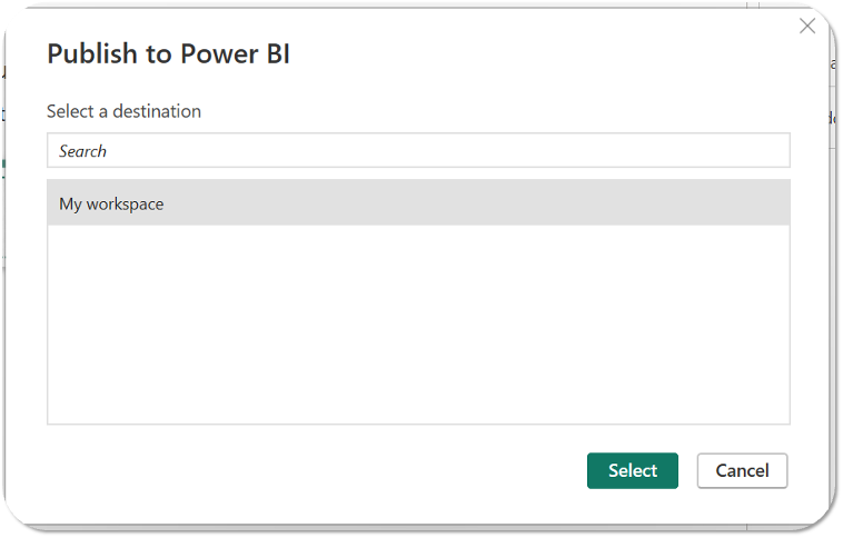 - Publish your Power BI report to a desired workspace (My workspace or Organizational).