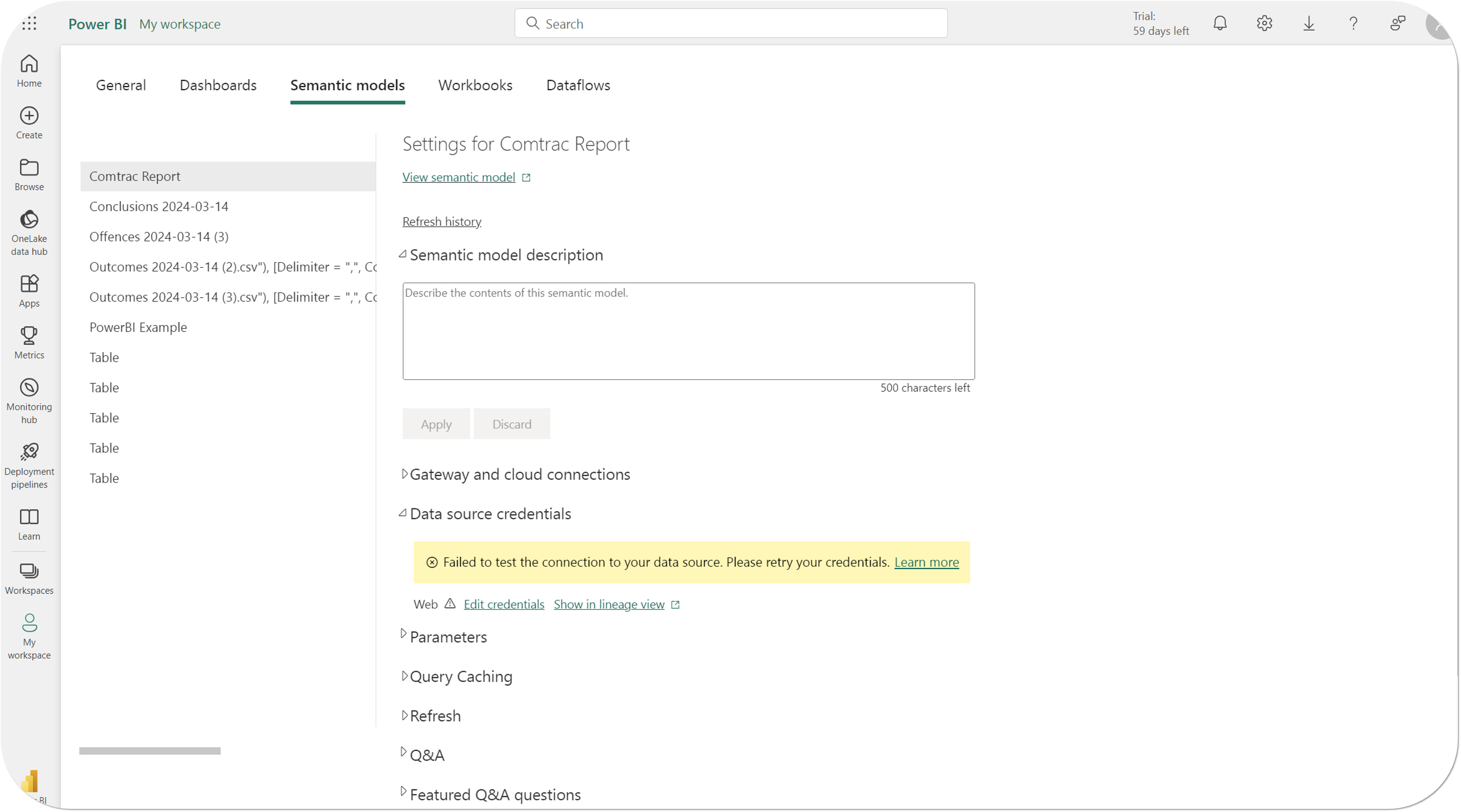 - Repeat the process for any additional Semantic Models (Comtrac Statistics Reports) that have been connected into your Power BI reports.