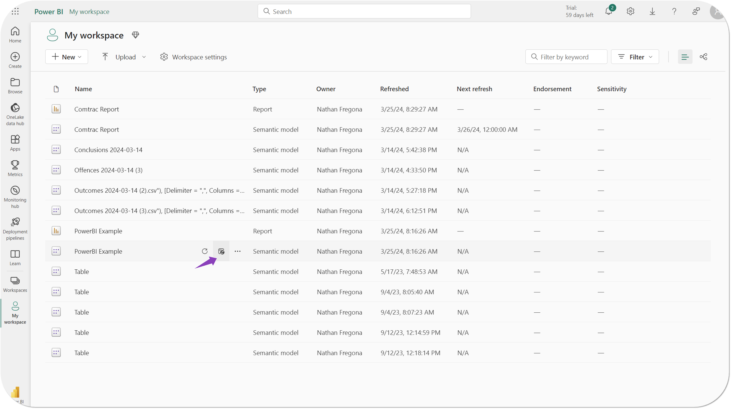 - Select Workspaces and choose the workspace you published your report into.