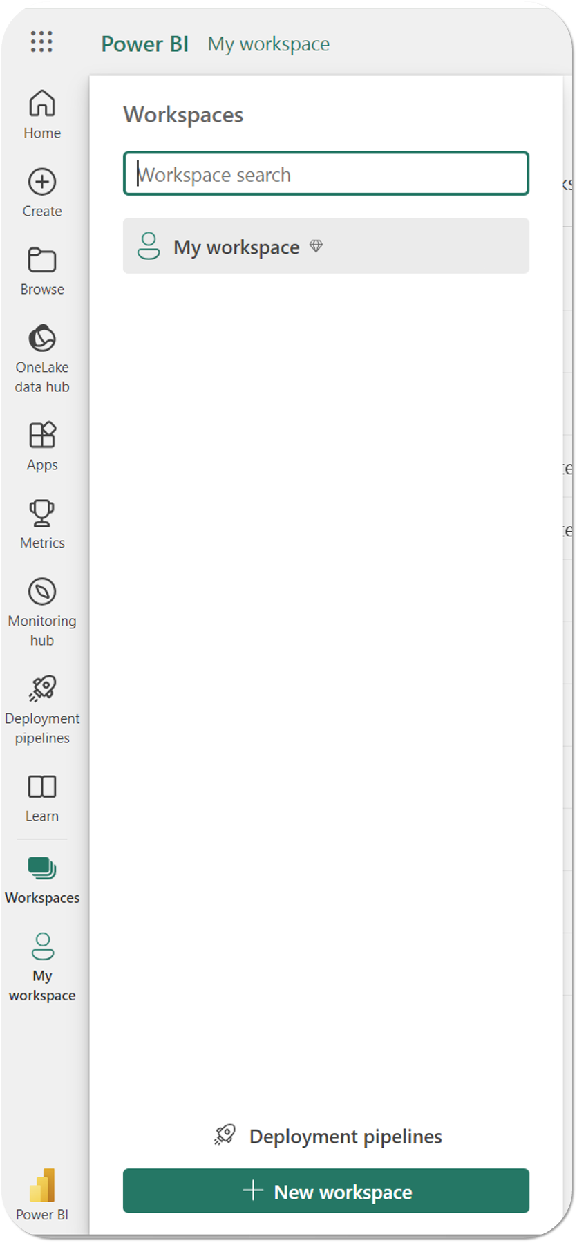- Sign-in to the Power BI app (app.powerbi.com) on your browser to access your workspaces.